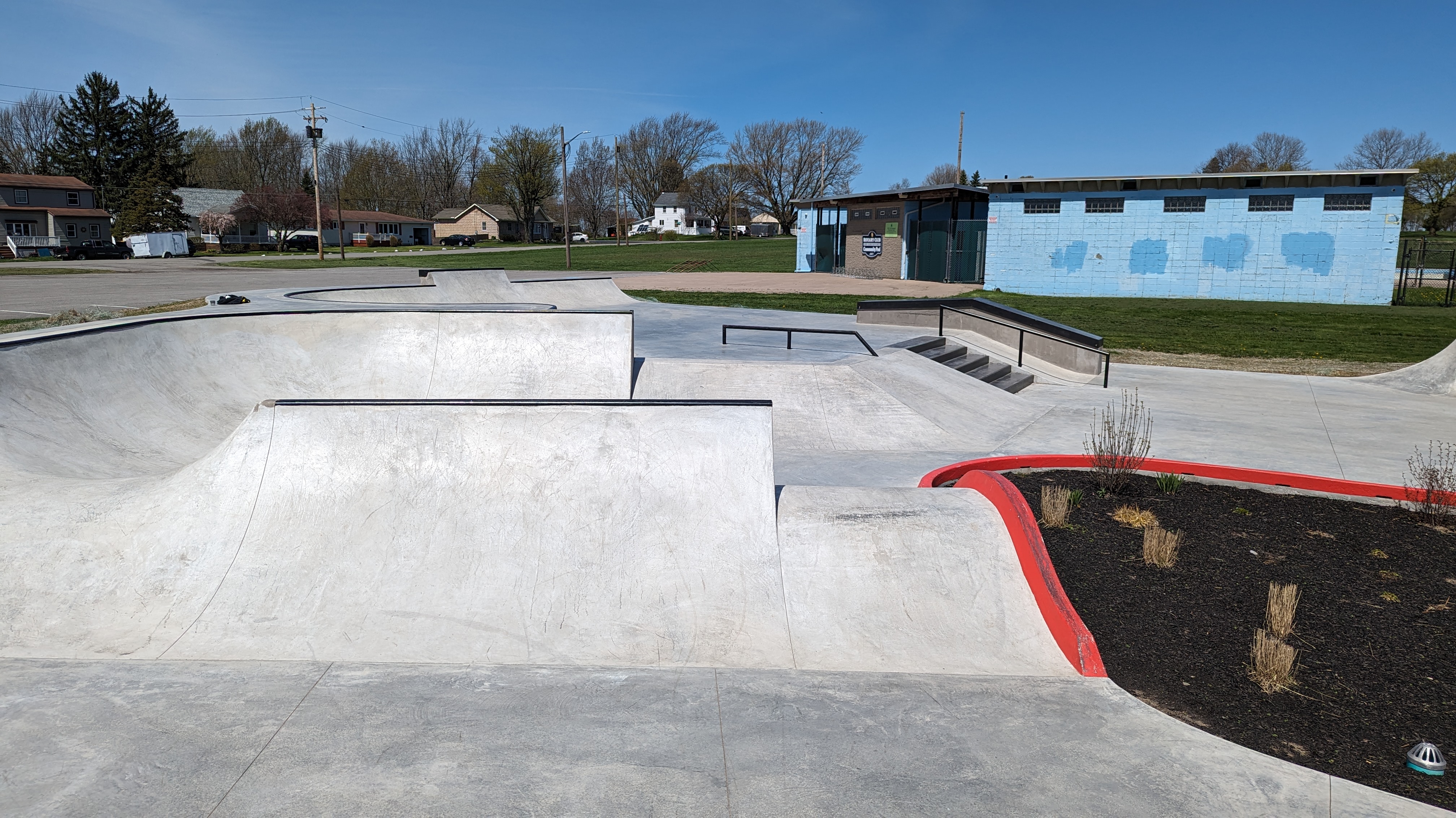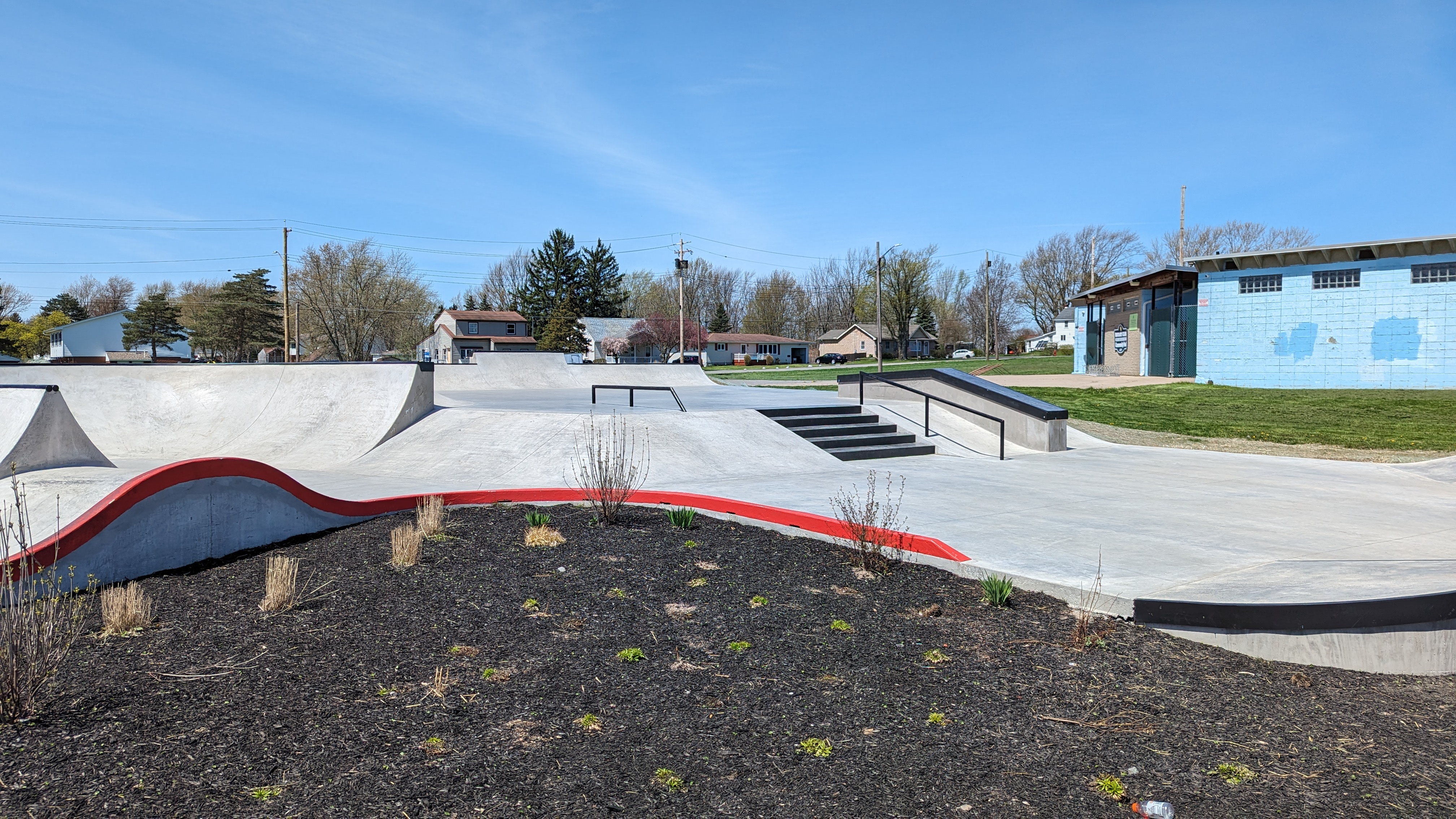 Concrete skatepark built in 2024 after a several-years-long initiative to replace the town’s old, modular skatepark.