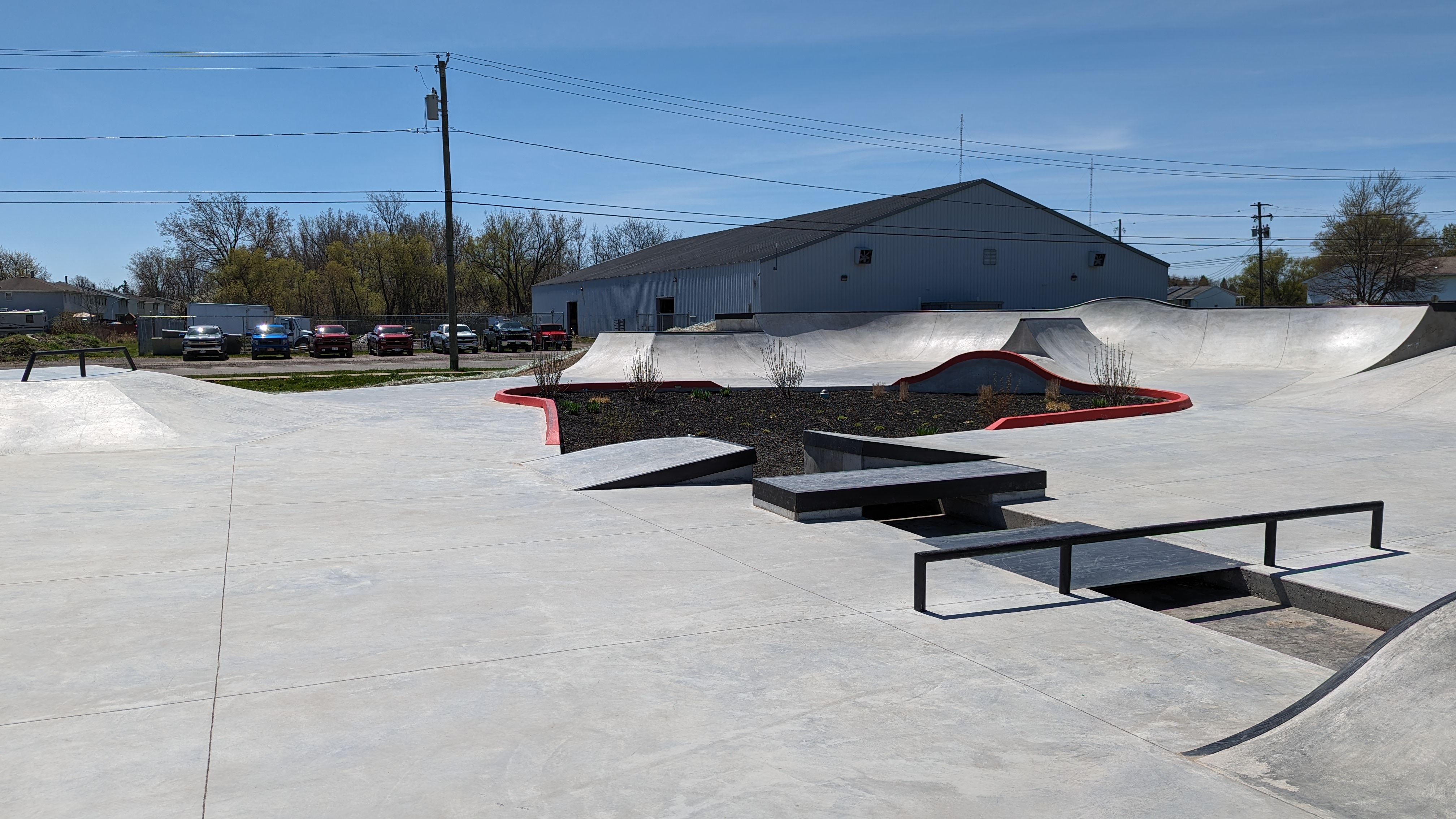 Excellent skatepark that’s worth a long drive. Great variety of transition and street obstacles, including several features that bridge a gap.