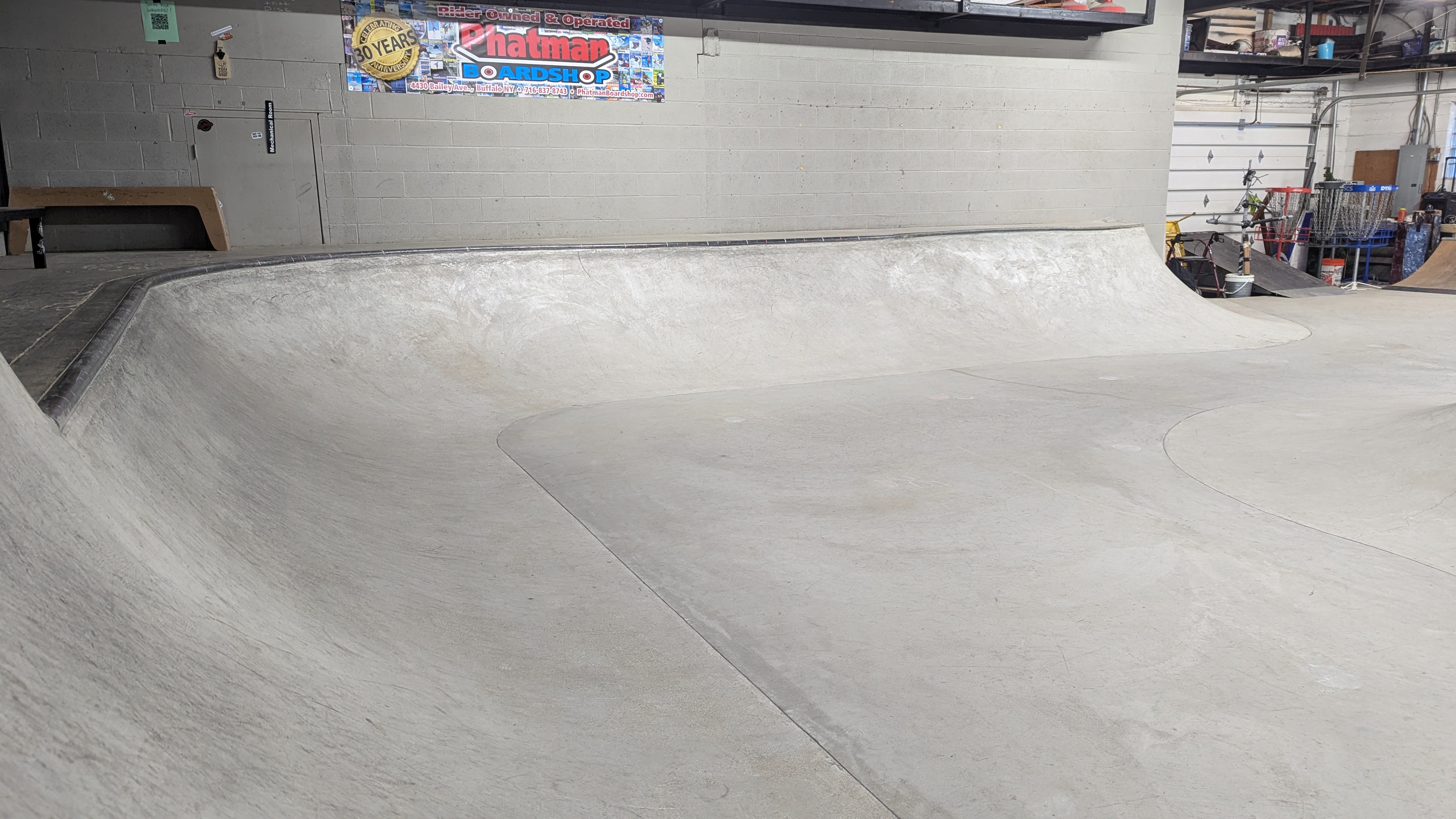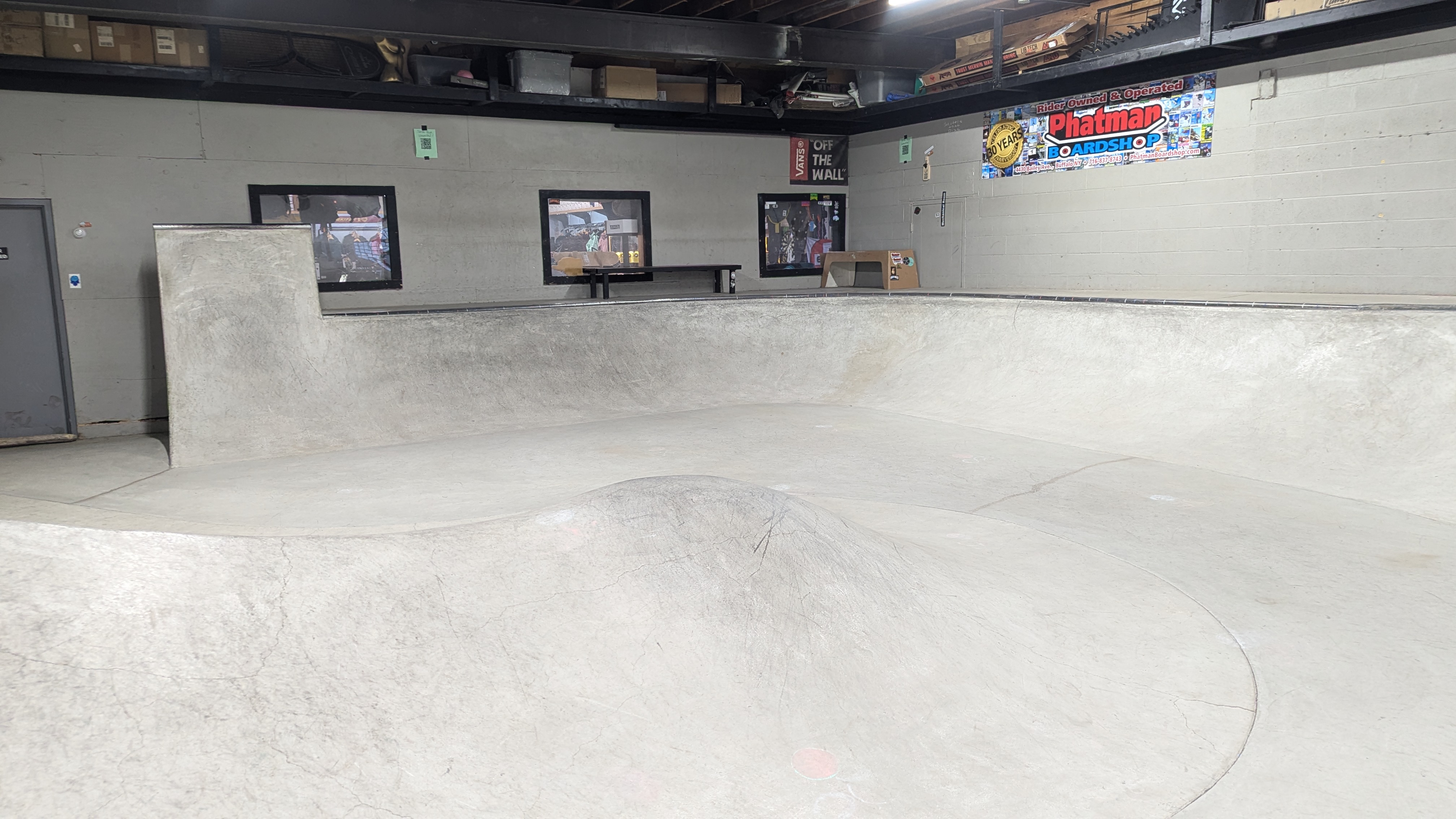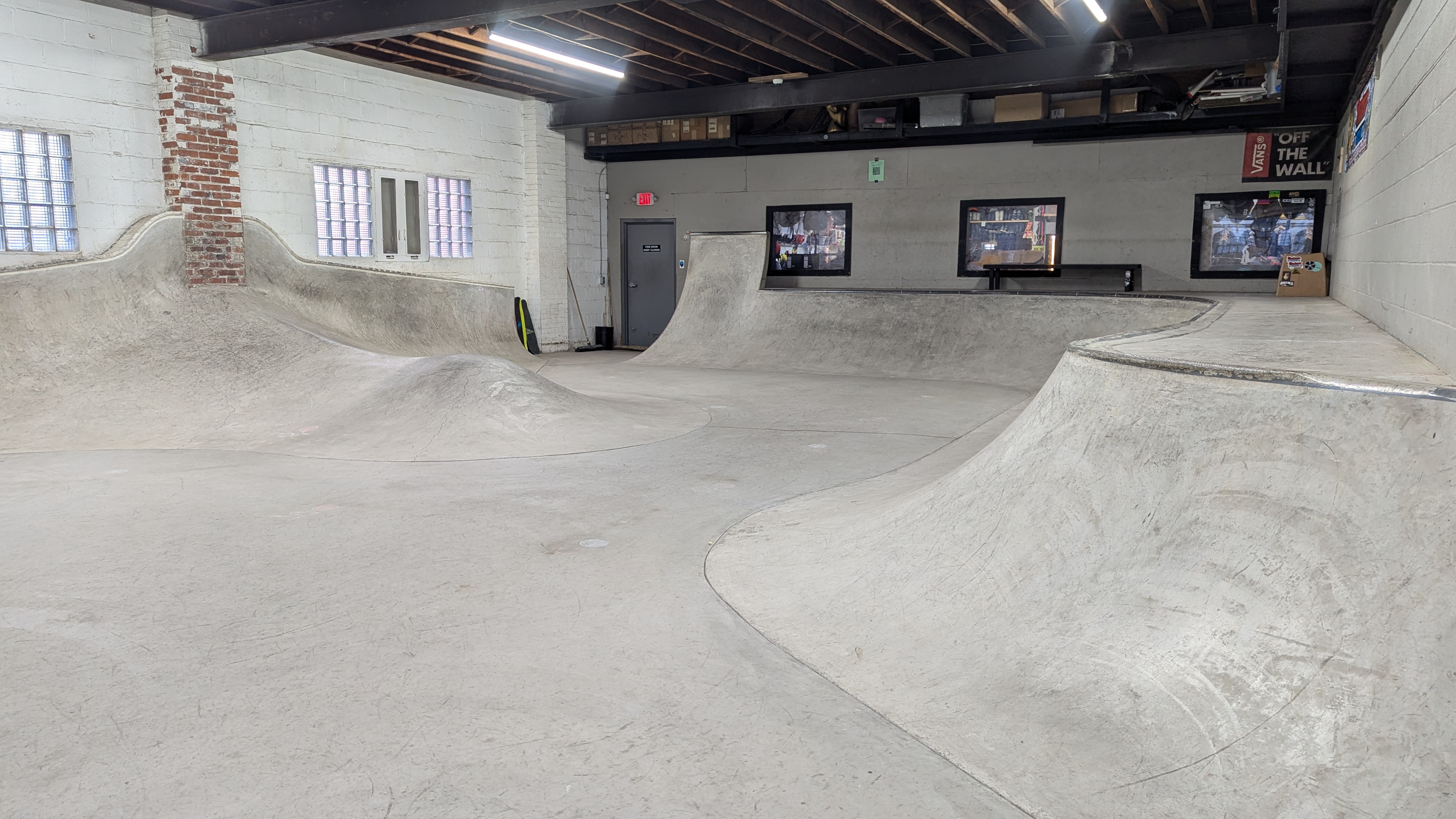 The skateshop contains an indoor, concrete skatepark. Occasionally the park is open for events, but otherwise you can rent the park by the hour. As of 2024, they charge $30 per hour for up to ten people. Call the shop to set it up.